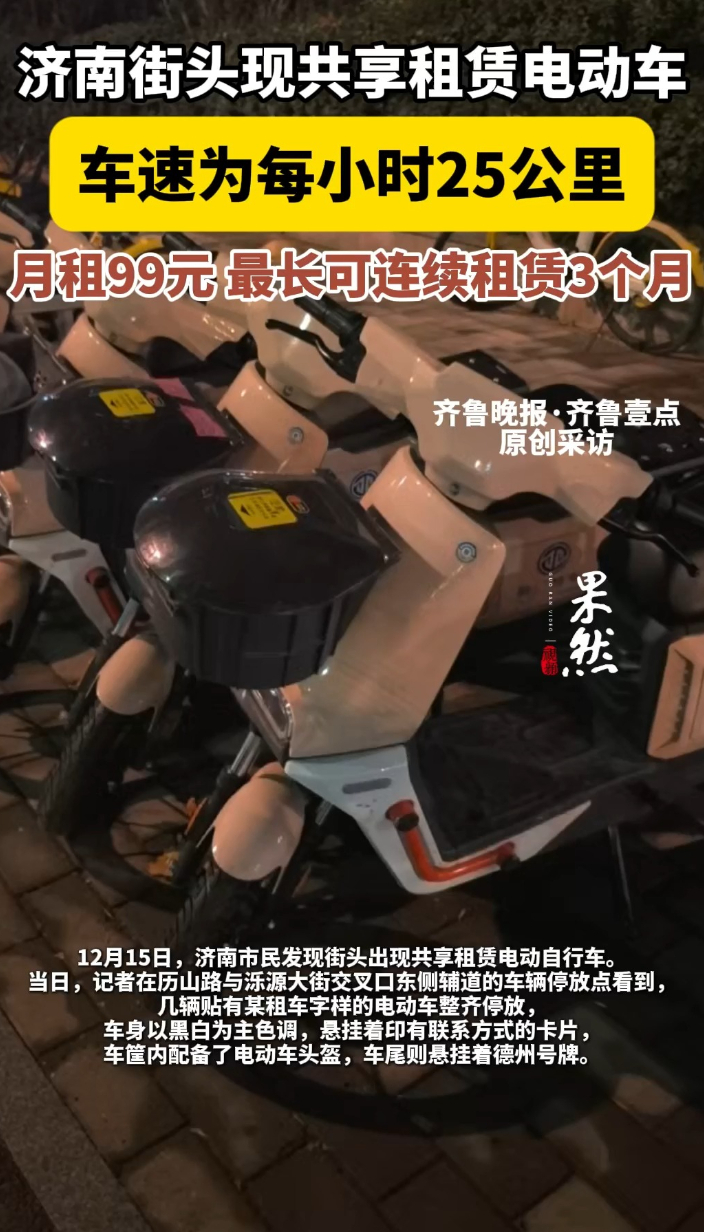 果然视频|济南街头现共享租赁电动车,最长可连续租赁3个月