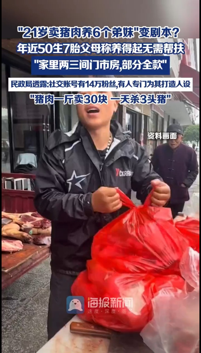 主播说丨“21岁卖猪肉养6个弟妹”变剧本? 年近50生7胎父母称养得起无需帮扶