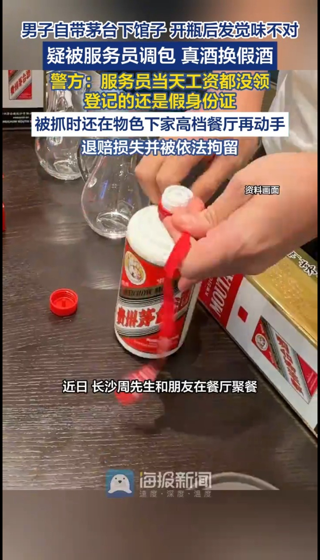 主播说丨男子自带茅台下馆子,开瓶后发觉味不对,疑被服务员调包