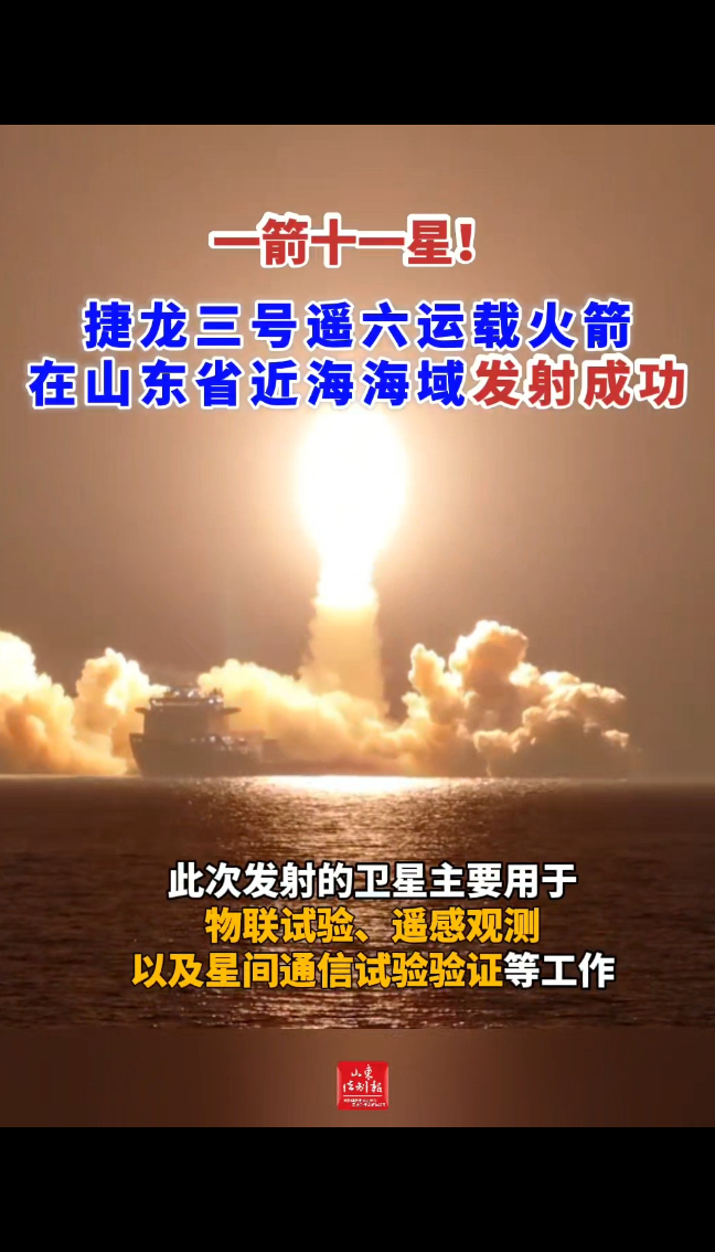 一箭十一星!捷龙三号遥六运载火箭在山东省近海海域发射成功