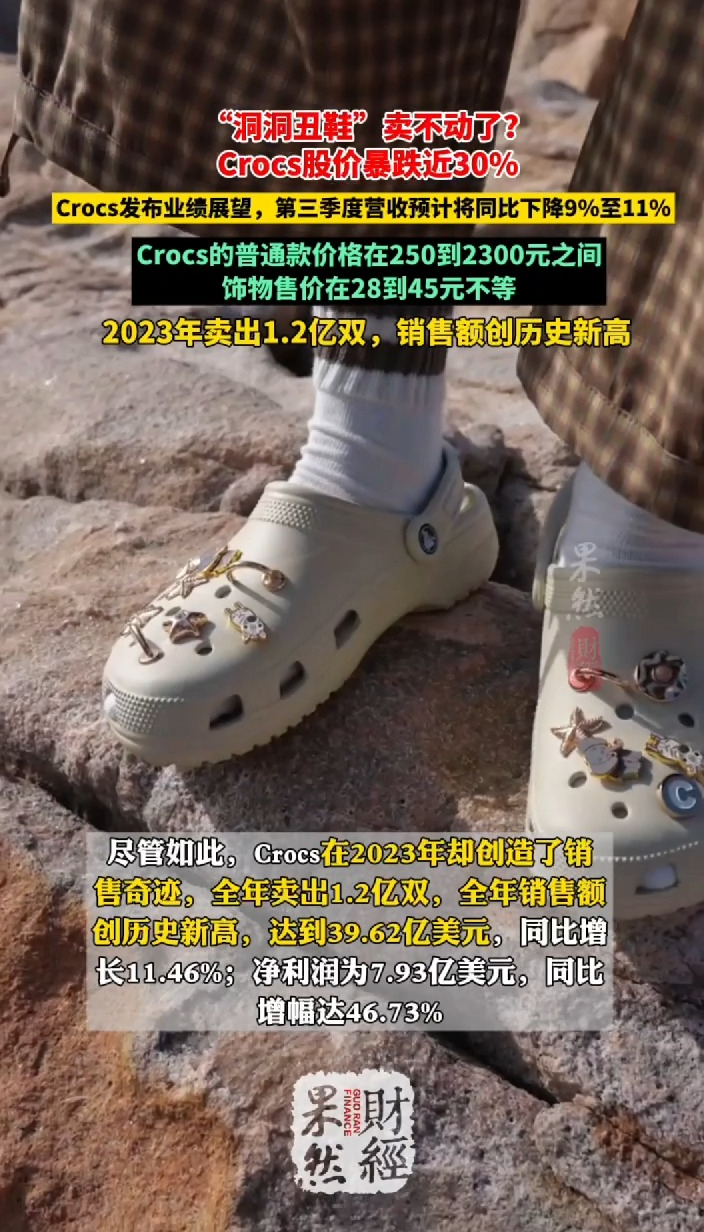 果然财经|“洞洞丑鞋”卖不动了?Crocs股价暴跌近30%