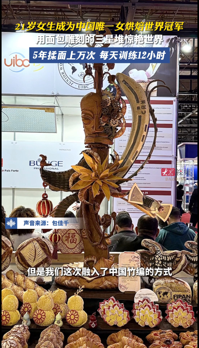 热点|21岁女生成为中国唯一女烘焙世界冠军,用面包雕刻的三星堆惊艳世界