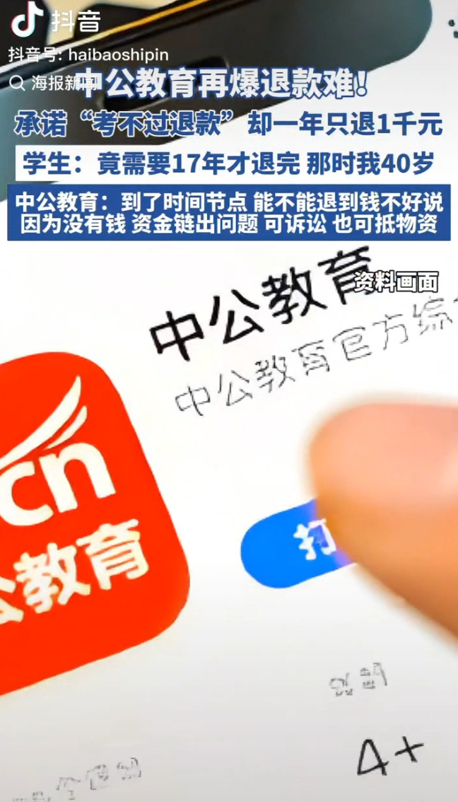 承诺考不过就退款!17000元退款竟需17年退完? 中公教育回应
