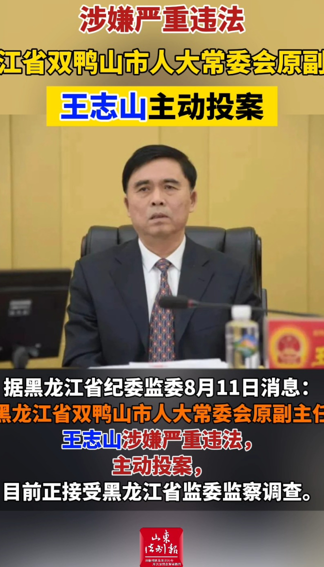 涉嫌严重违法 黑龙江省双鸭山市人大常委会原副主任王志山主动投案