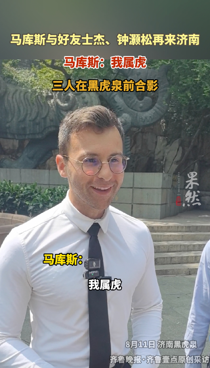 果然视频|马库斯与士杰、钟灏松在黑虎泉前合影,马库斯:我属虎