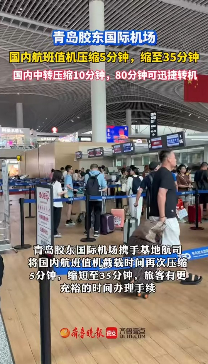 果然视频丨青岛胶东国际机场国内航班值机及中转时间再压缩