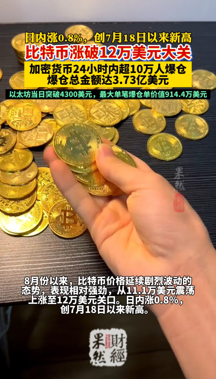 果然财经 | 比特币涨破12万美元大关!加密货币爆仓超十万人