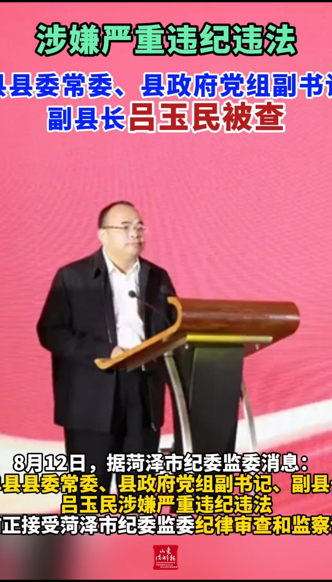 涉嫌严重违纪违法,单县县委常委、县政府党组副书记、副县长吕玉民被查