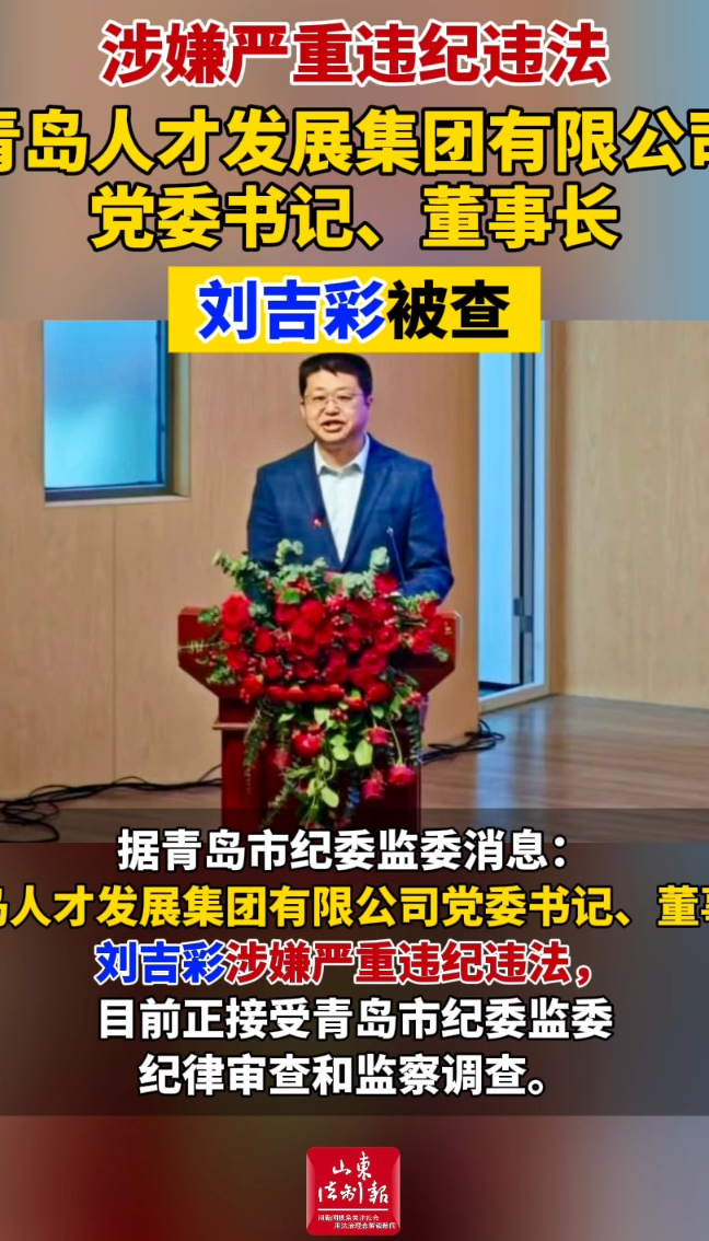 涉嫌严重违纪违法 青岛人才发展集团有限公司党委书记、董事长刘吉彩被查