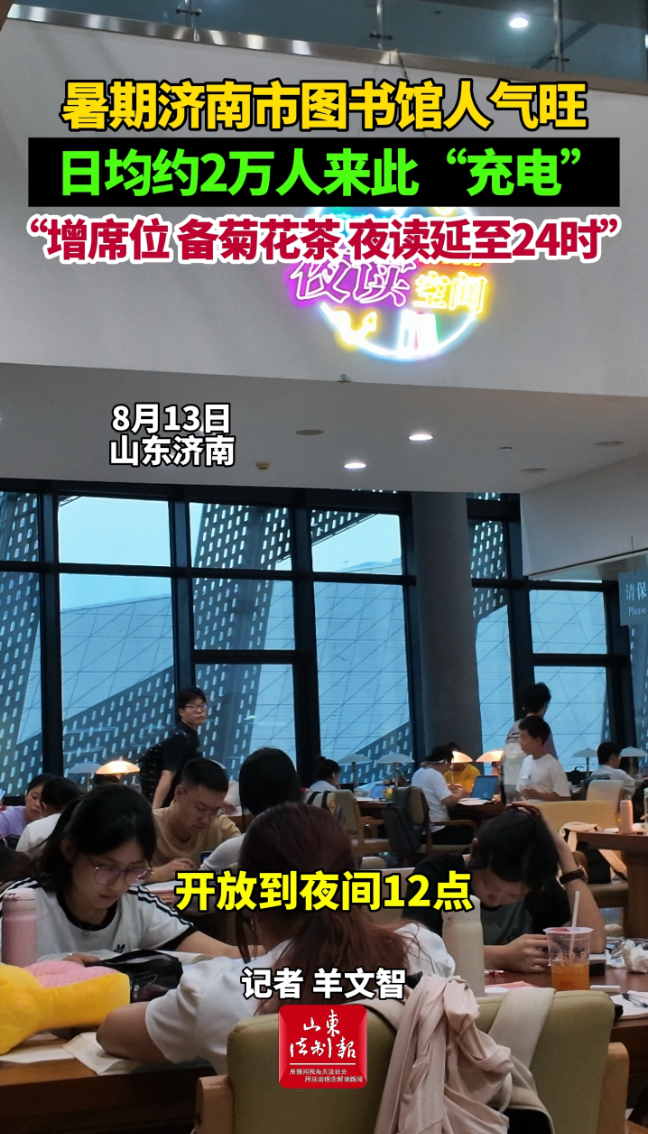 暑期济南市图书馆人气旺,日均约2万人来此“充电”“增席位 备菊花茶 夜读延至24时”