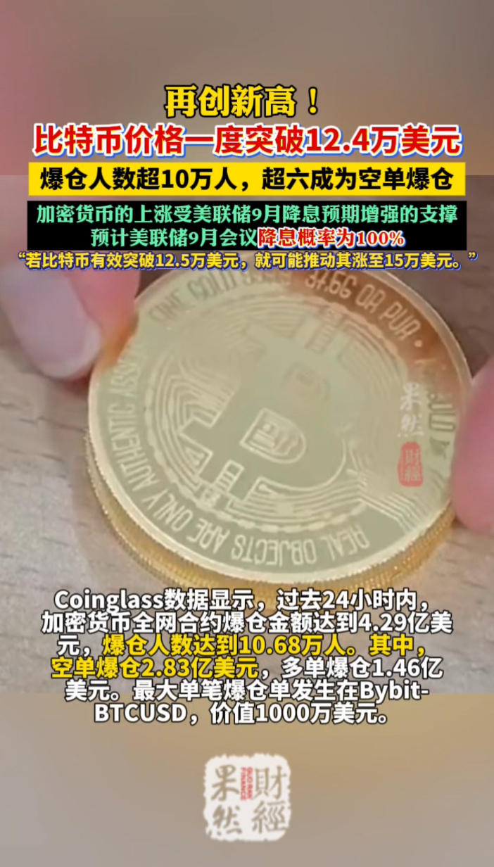 果然财经 | 超十万人爆仓!比特币价格一度突破12.4万美元
