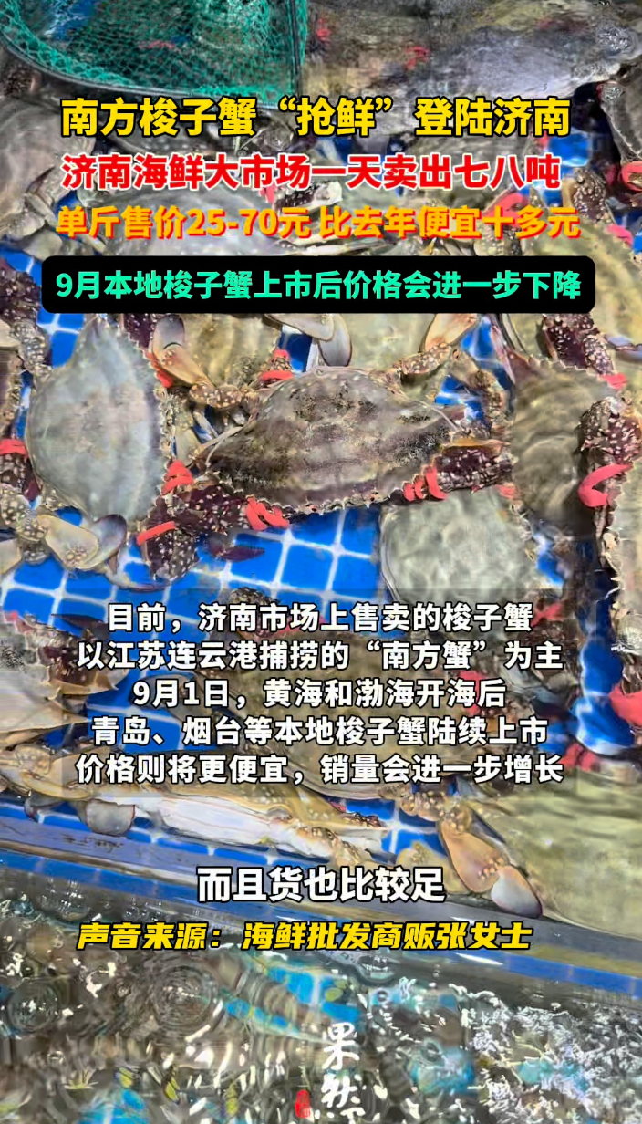果然视频|南方梭子蟹“抢鲜”登陆,济南海鲜大市场日销七八吨
