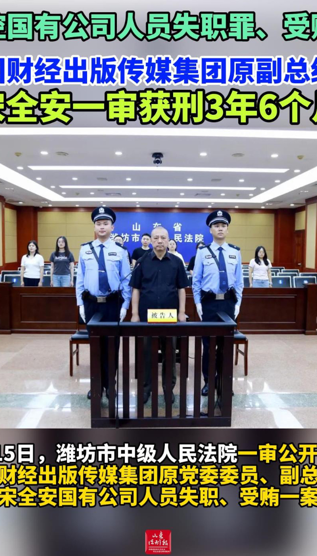 被控国有公司人员失职罪、受贿罪 中国财经出版传媒集团原副总经理宋全安一审被判有期徒刑3年6个月