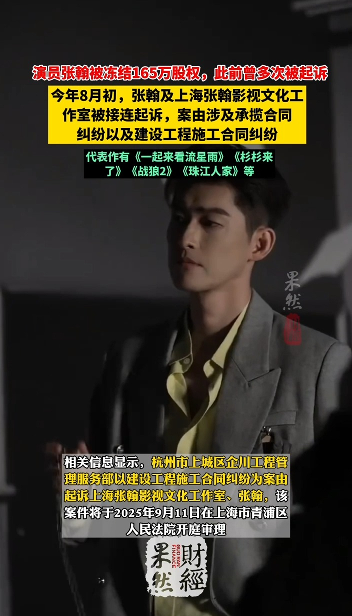 果然财经|演员张翰被冻结165万股权,此前曾多次被起诉