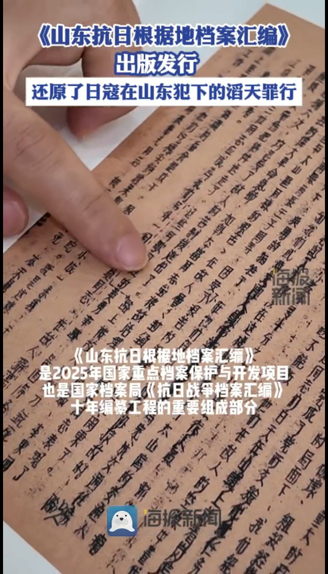 《山东抗日根据地档案汇编》出版发行,324件档案为首次公布