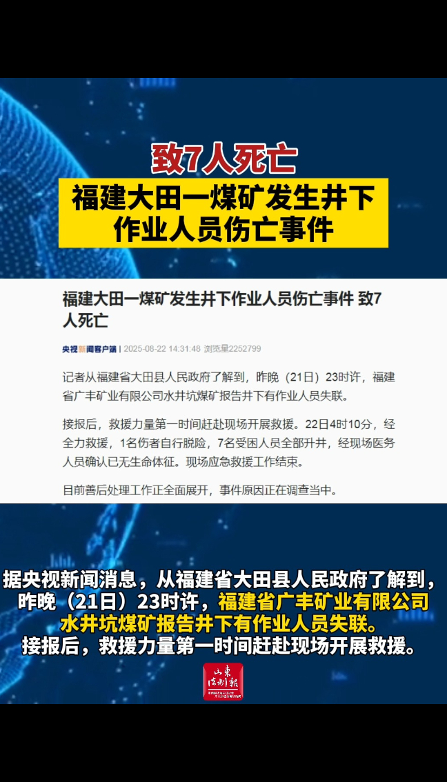 致7人死亡,福建大田一煤矿发生井下作业人员伤亡事件