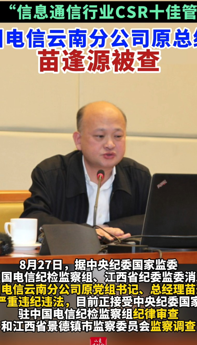 曾获“信息通信行业CSR十佳管理者” 中国电信云南分公司原党组书记、总经理苗逢源被查