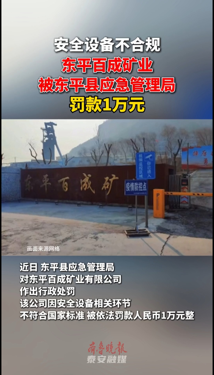 果然视频丨东平百成矿业因安全设备不合规被应急管理部门罚款1万元