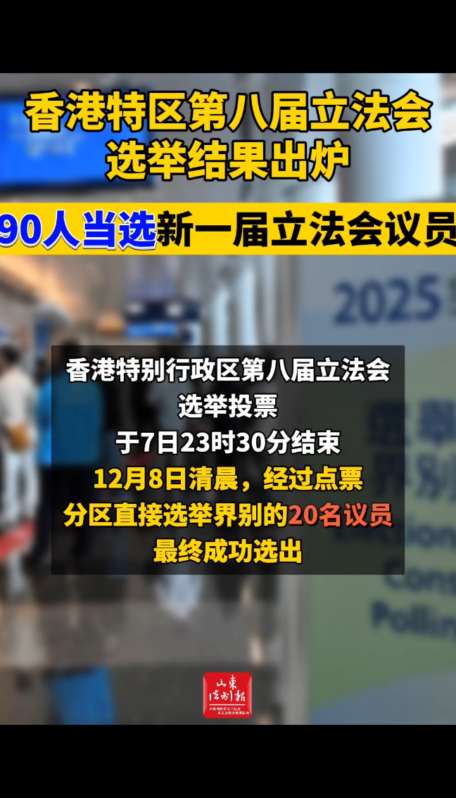 香港特区第八届立法会选举结果出炉 90人当选新一届立法会议员