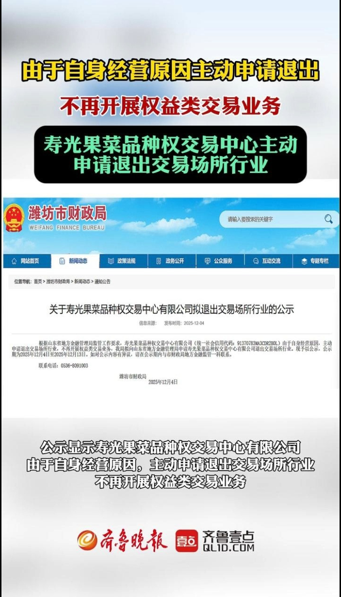 果然视频I寿光果菜品种权交易中心主动申请退出交易场所行业