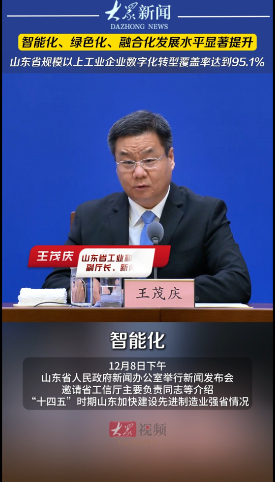 智能化、绿色化、融合化发展水平显著提升,山东省规模以上工业企业数字化转型覆盖率达到95.1%