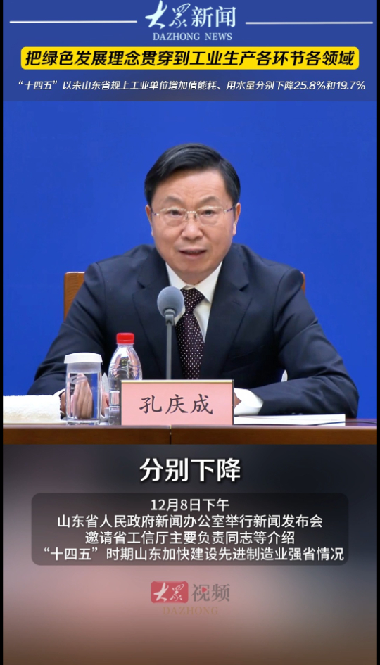 把绿色发展理念贯穿到工业生产各环节各领域,“十四五”以来山东省规上工业单位增加值能耗、用水量分别下降25.8%和19.7%