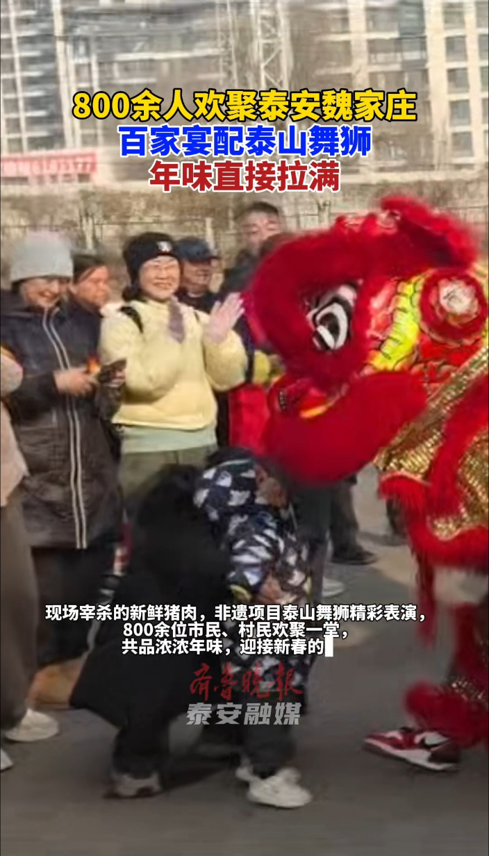 果然视频|800余人欢聚泰安魏家庄!百家宴配泰山舞狮 年味直接拉满