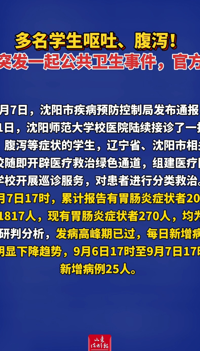 多名学生呕吐、腹泻!沈阳突发一起公共卫生事件,官方通报