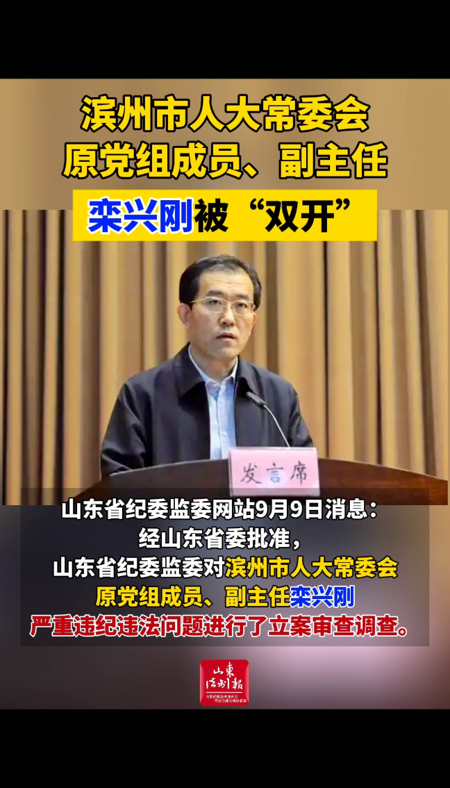 滨州市人大常委会原党组成员、副主任栾兴刚严重违纪违法被“双开”