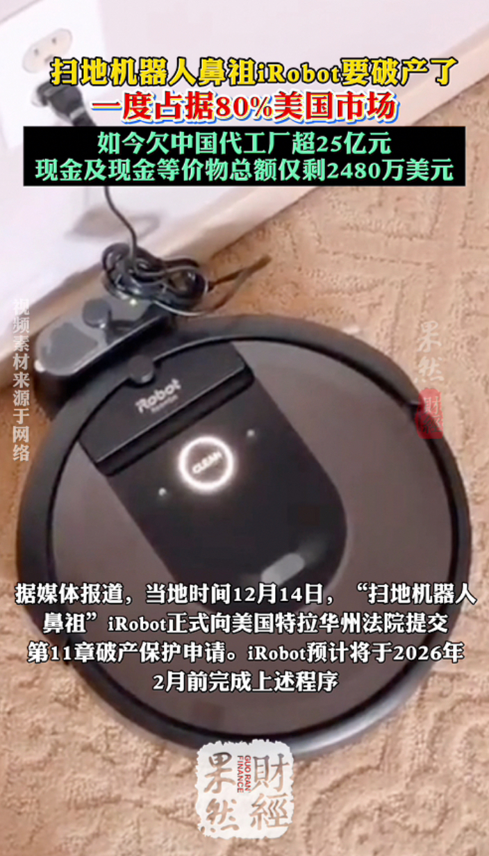 果然财经|扫地机器人“鼻祖”要破产了!欠中国代工厂超25亿元