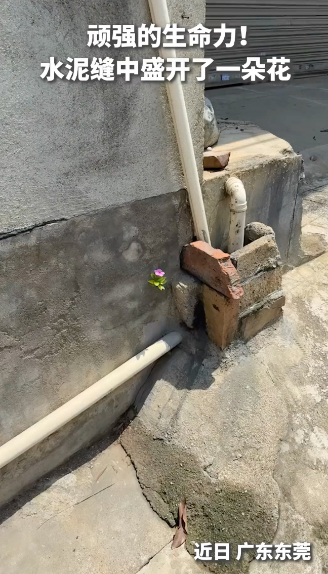 多么顽强的生命力!墙角水泥缝中,盛开了一朵小花