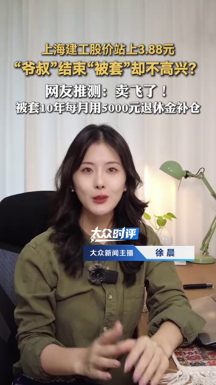 “爷叔”成功“解套”? 上海建工股价站上3.88元,“被套”10年的“爷叔”曾每月用5000元退休金补仓,如今成功“解套”却不高兴?网友推测:卖飞了!#股票 #投资 #建工爷叔 #上海 #赚钱