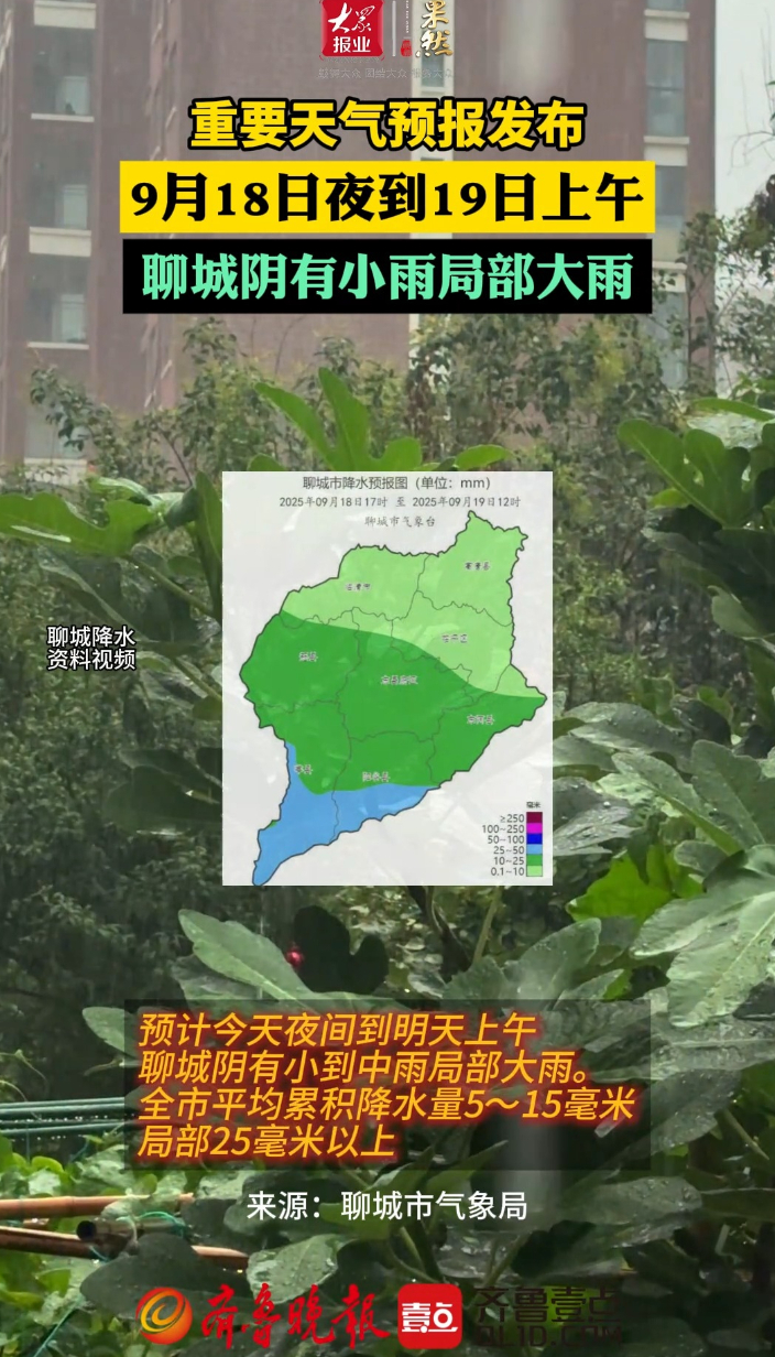 阴有小到中雨局部大雨,聊城发布重要天气预报