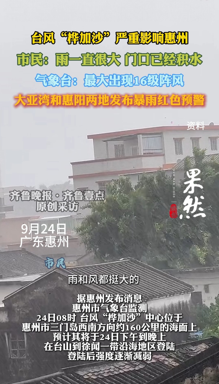 果然视频|台风“桦加沙”严重影响惠州,最大出现16级阵风