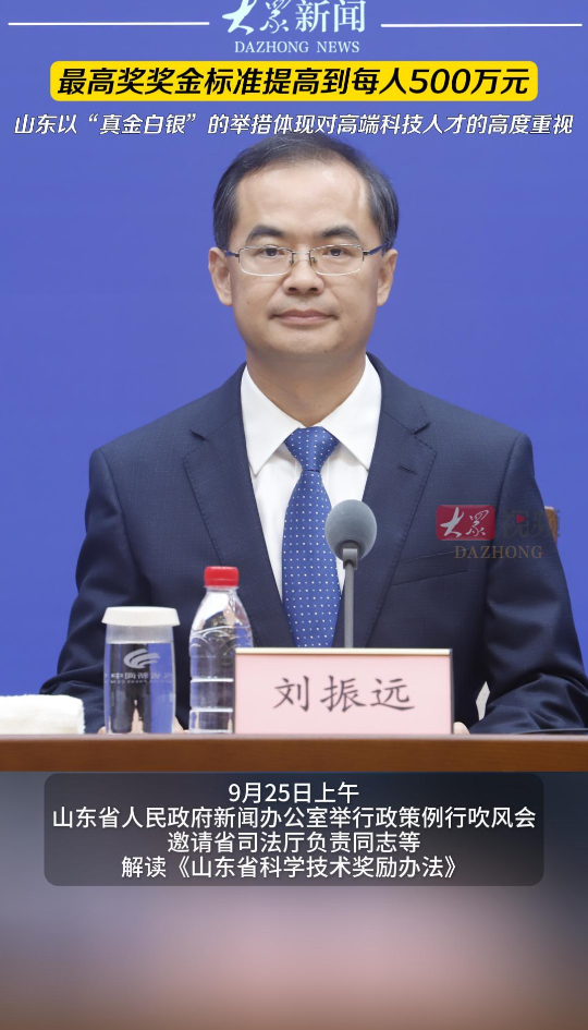 最高奖奖金标准提高到每人500万元,山东以“真金白银”的举措体现对高端科技人才的高度重视
