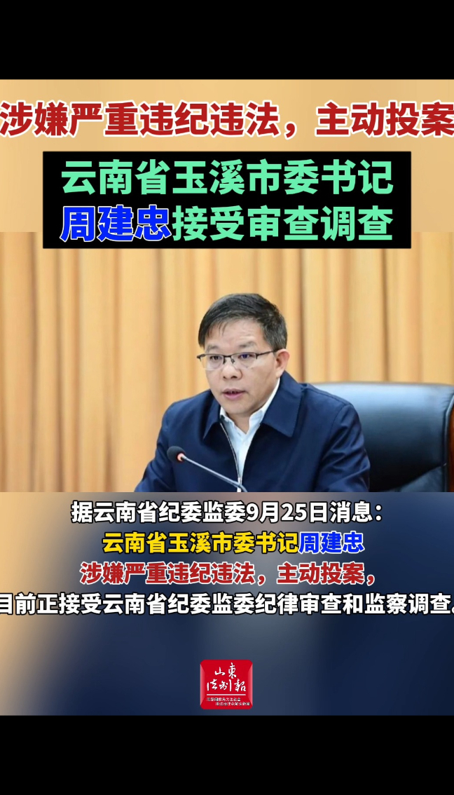 涉嫌严重违纪违法,主动投案 云南省玉溪市委书记周建忠接受审查调查