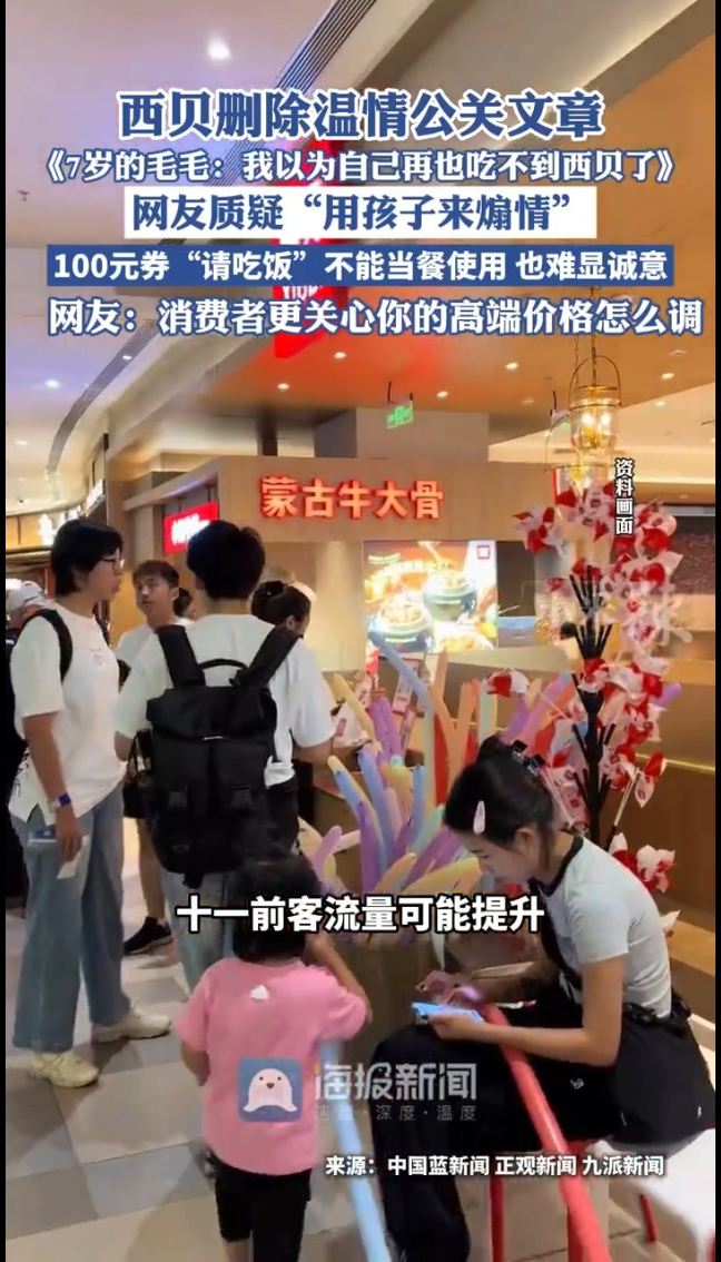 主播说丨西贝删除温情公关文,网友质疑“用孩子来煽情”