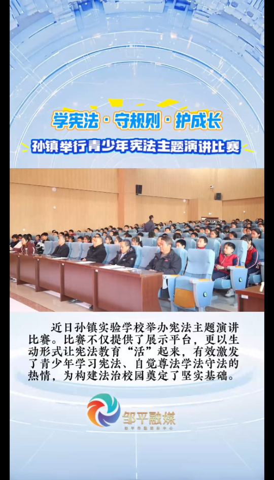 “学宪法 守规则 护成长” 邹平市孙镇举行青少年宪法主题演讲比赛
