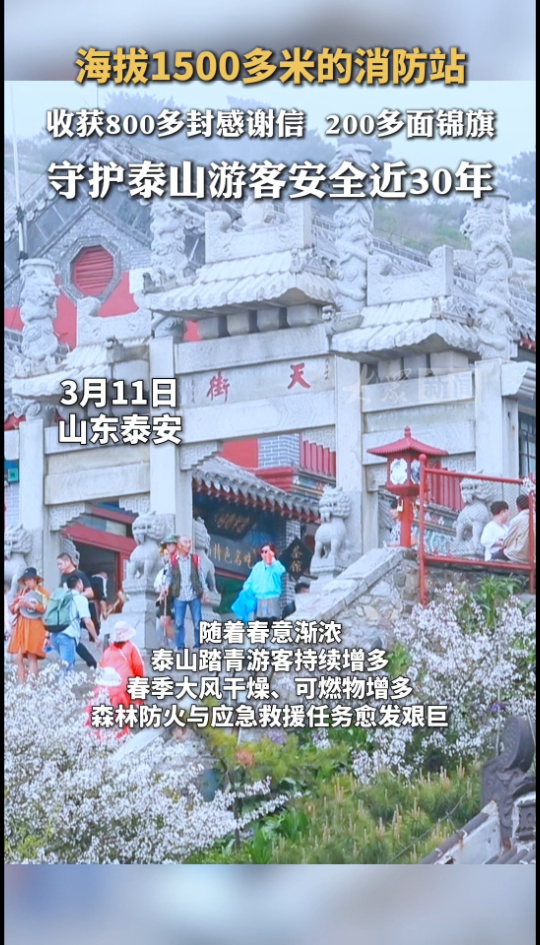 海拔1500多米的消防站,收获800多封感谢信和200多面锦旗,守护泰山游客安全近30年