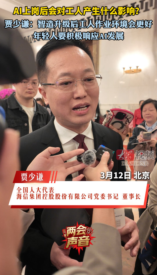 两会声音|贾少谦:智造升级后工人作业环境会更好,年轻人要积极响应AI发展