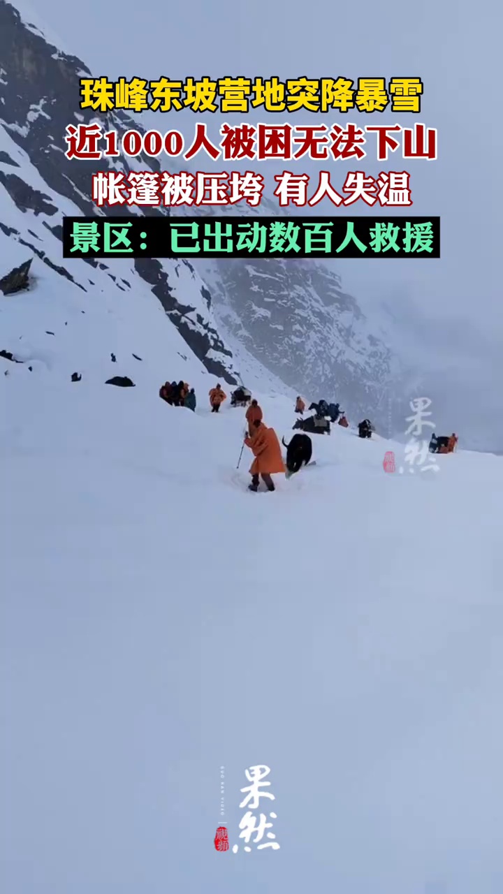 珠峰东坡营地近千人因暴雪被困