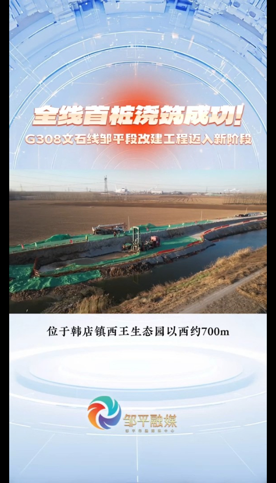 全线首桩浇筑成功!G308文石线邹平段改建工程迈入新阶段