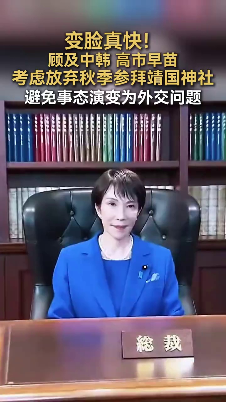 变脸真快!顾及中韩,高市早苗考虑放弃秋季参拜靖国神社,避免事态演变为外交问题#高市早苗