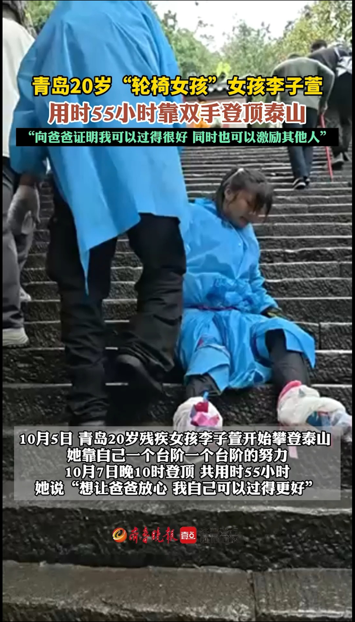 果然视频丨55小时登顶泰山!残疾女孩李子萱坦言希望爸爸放心