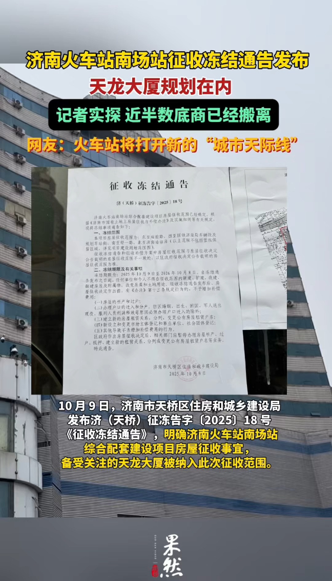 果然视频|打开城市“天际线” ,济南火车站南广场改造启动征收