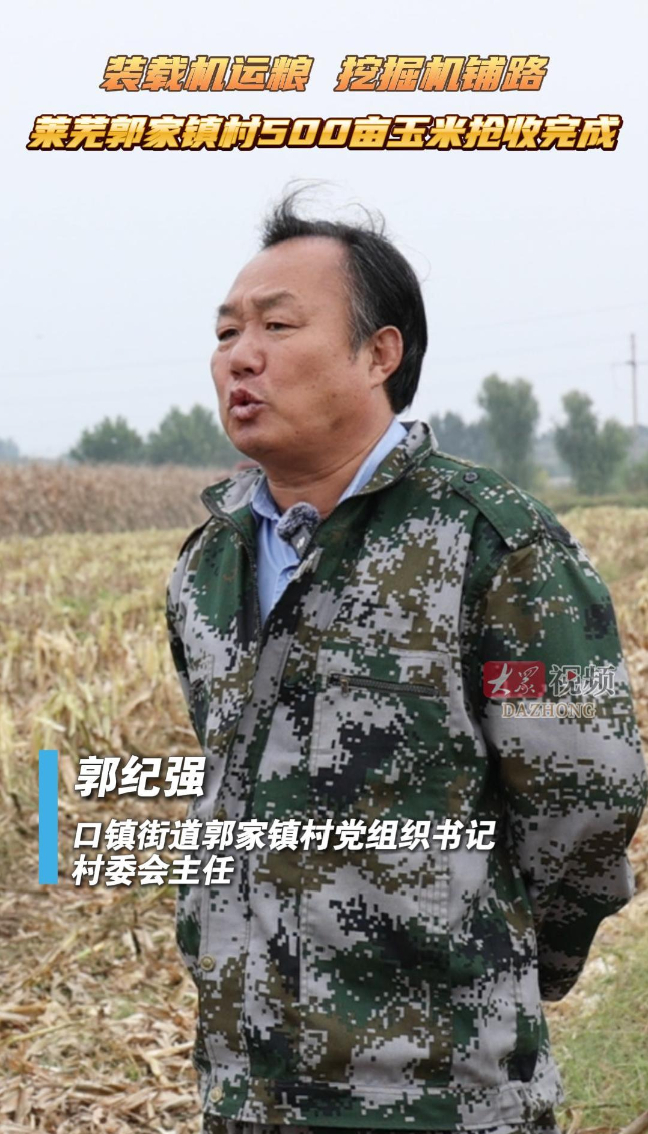 装载机运粮,挖掘机铺路,莱芜郭家镇村500亩玉米抢收完成