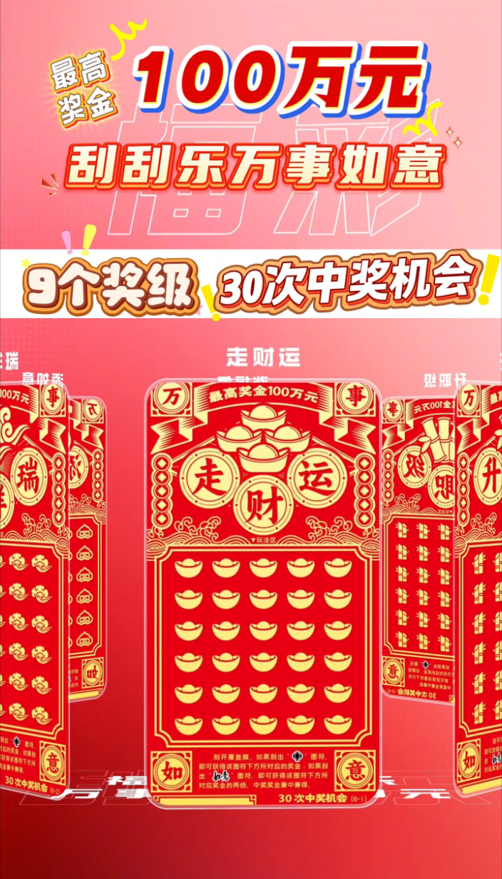 最高奖金100万元!福彩刮刮乐“万事如意”上市