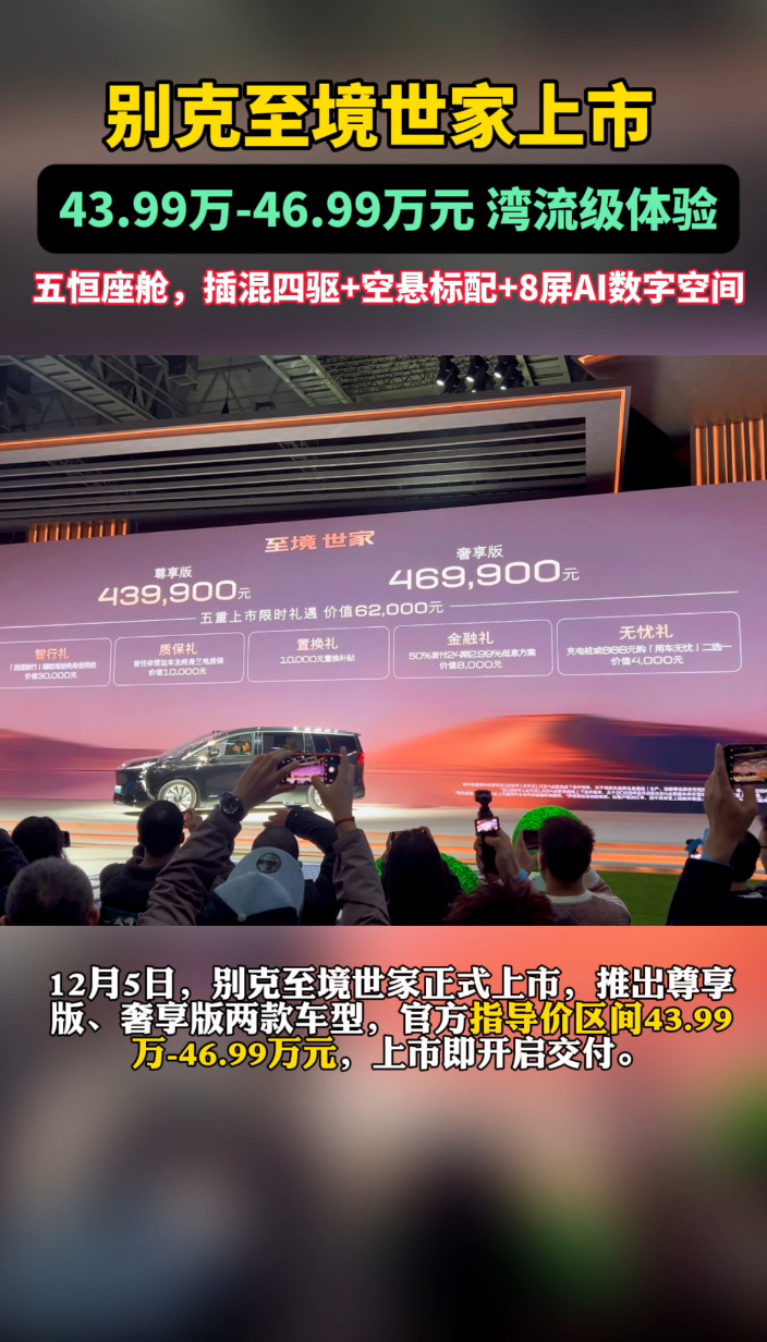 别克至境世家正式上市,43.99万元起售标配插混四驱与空悬