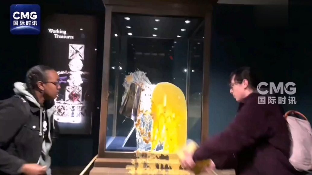 果然视频·看天下|英王冠展柜遭抗议者污损