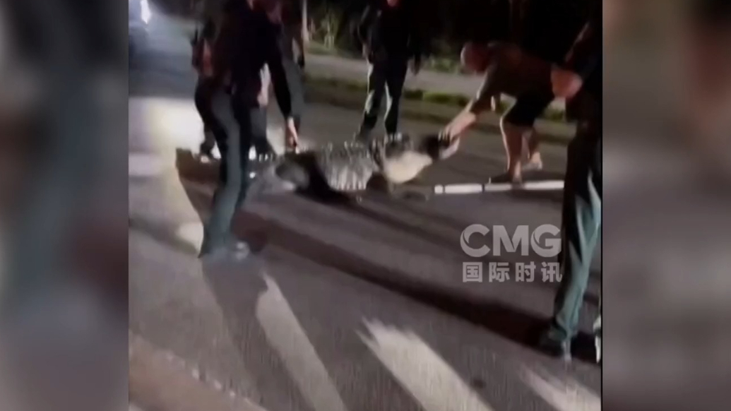 果然视频·看天下|美佛州一条4.2米鳄鱼当街与警察“对峙”